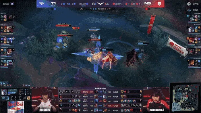 比赛第23分钟,Oner劫率先阵亡,NS抓到机会打出0换3将劣势缩小到两千。