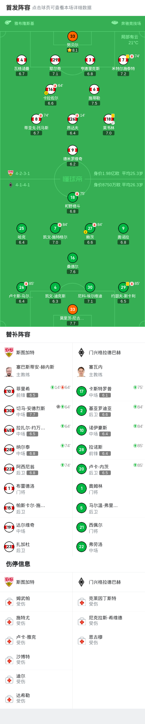 斯图加特1-0门兴格拉德巴赫,切马-安德烈斯一锤定音